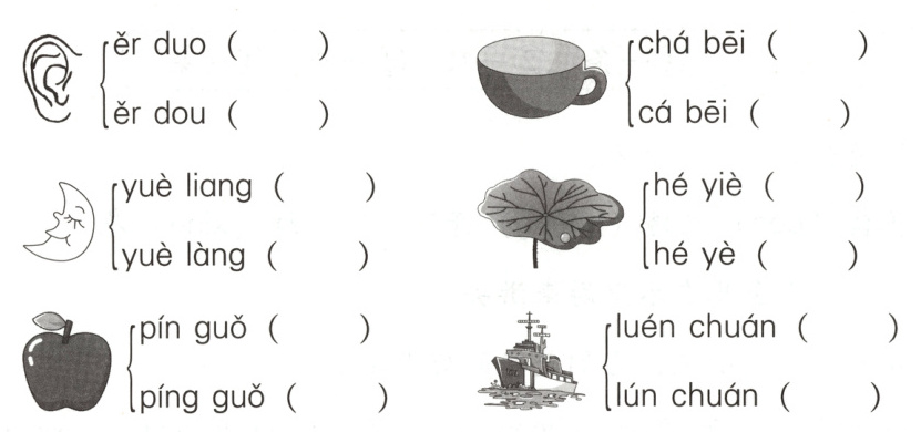 四、看图,在正确的音节后面画“√”(6分)