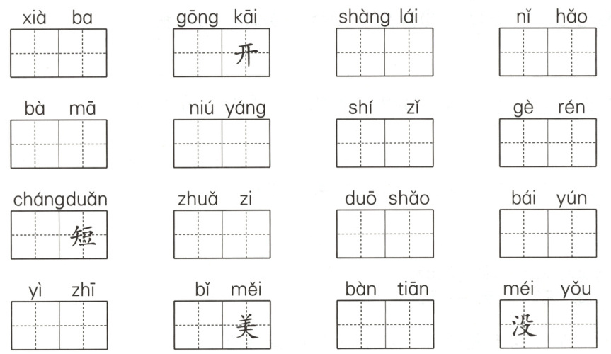 下巴 公 上来 你好 爸妈 牛羊 石子 个人 长 爪子 多少 白云 一只 比 半天 有