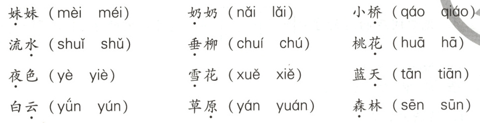 六、mèi nǎi qiáo shuǐ chuí huā yè xuě tiān yún yuán sēn