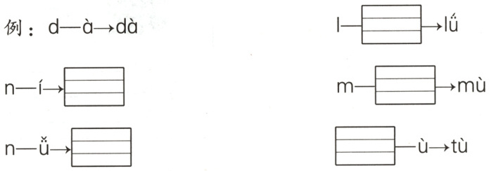一、按顺序在车厢上写出正确的单韵母和声母。