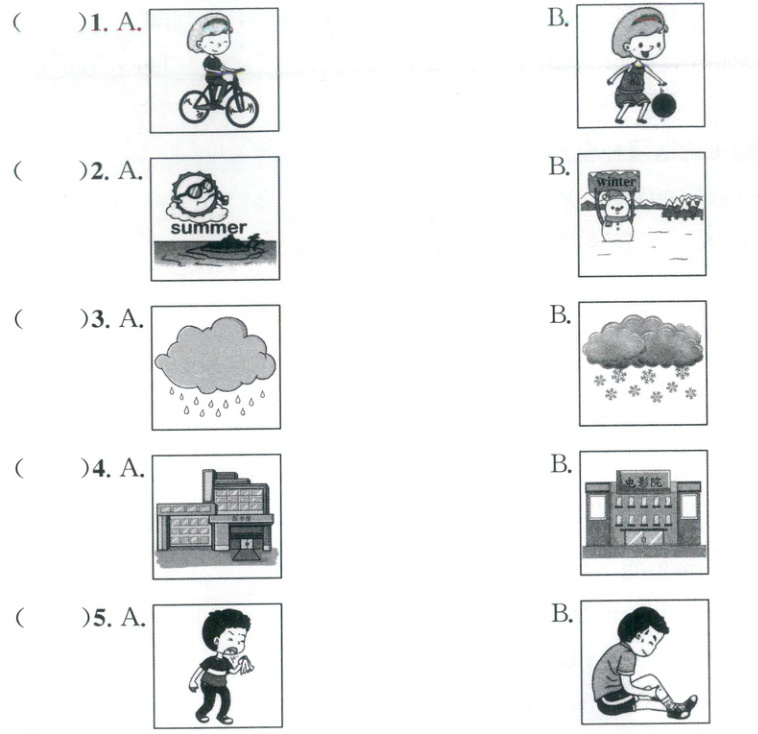 四、听短对话,选出与你所听内容相符的图片。(5分)