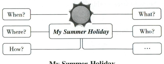 请根据思维导图提示,介绍一下你的暑假安排吧!(不少于5句话哦!)