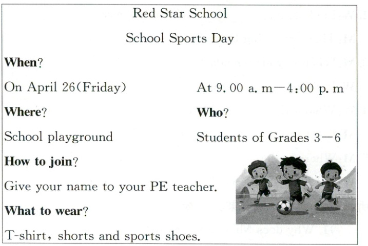 ()1. The poster(海报)is about School Sports Day.