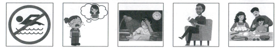 一、听句子,给下列图片排序并将其标号填写在相应的括号里。(5分)