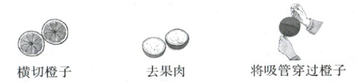 ①红、黄、蓝3色橡皮泥 ②大号白色泡沫球 ③牙签 ④橙子