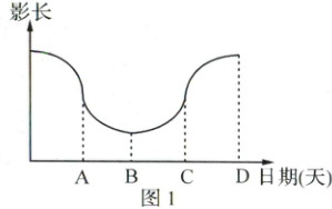(2)一年中,在A到C这些天内,正午日影长度的变化规律是(
