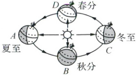 (填字母)时,地处北半球的正午太阳仰角最高。(3)当地球运动到C点时,浙江昼夜时间的特点是(