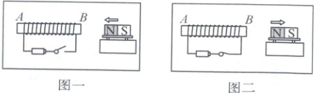 23. 同学们通过实验探究电磁铁的磁极,断开开关时现象如图一所示;闭合开关时如图二所示。反复多次实验,现象都是如此,该小组可以推理得出的结论是(