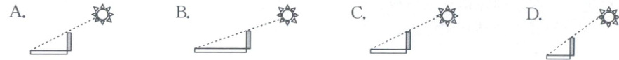 18. 在 2024 年 6 月 22 日这一天,测得正午物体的影子最可能是下图中的(