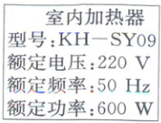 17. 右图为某取暖器铭牌,该取暖器正常工作 5 小时,消耗电能(