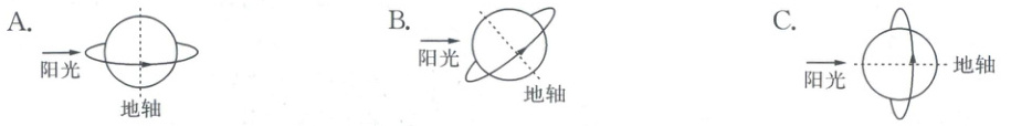 9. 下列示意图中,无法看到昼夜交替现象的是(