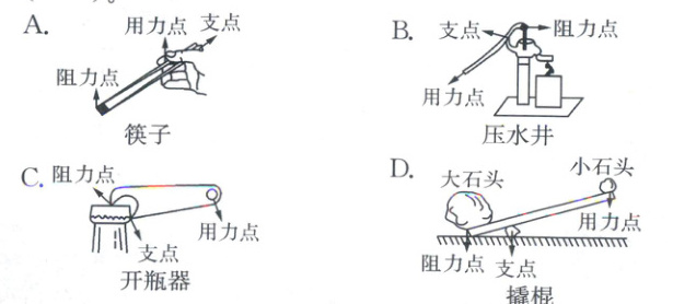 20. 下列杠杆类工具中,用力点、阻力点、支点标注不正确的是(