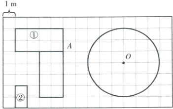 (3)在空白处画出原长方形按$1:2$缩小后的图形并在图内标上②。(2分)