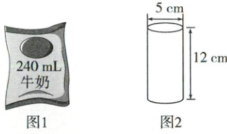 2. 妈妈要把一袋牛奶倒入圆柱形杯子中(如下图),这个杯子能装下这袋牛奶吗?请用算式说明你的想法。(4分)