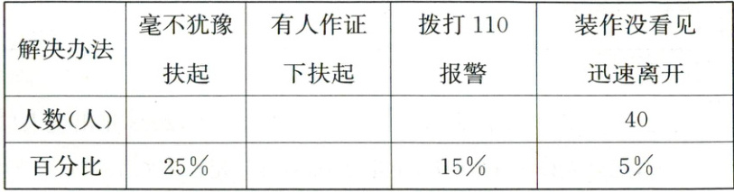 (2)“毫不犹豫扶起”的人数比“装作没看见迅速离开”的人数多百分之几?(3分)