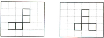 1. 下面是两个用小正方形组成的图形,请你在每个图形上各补画一个小正方形、使补画后的图形成为轴对称图形。(2分)