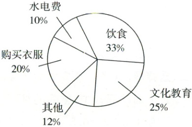 3. 如图是宁宁家2023年7月份的支出情况统计图,宁宁家这个月的水电费是140元,文化教育和购买衣物各用去多少元?(4分)
