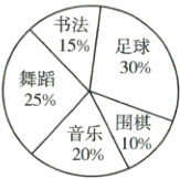 (2)在条形统计图中,把喜欢书法的人数表示出来;