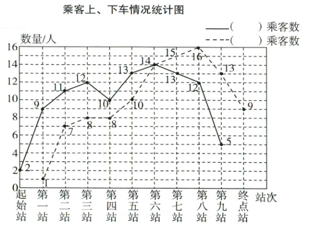 2. 如图是一辆公交车从起始站至终点站的行驶过程中乘客上下车情况统计图。(5分)