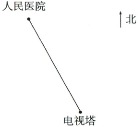 1. 如图,已知人民医院距电视塔的实际距离是 $ 2400\ m $,图上距离是 $ 4\ cm $。(3分)