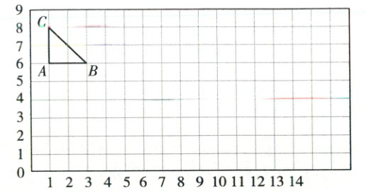 (3)画出图中三角形 $ ABC $ 按 $ 3 : 1 $ 放大后的图形。(2分)