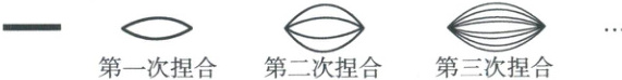 11. 你喜欢吃拉面吗?拉面馆的师傅,用一根很粗的面条,把两头捏合在一起拉伸,再捏合,再拉伸,反复几次,就把这根很粗的面条拉成了许多细的面条,如下面草图所示。这样捏合到第(