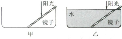 (10)图乙所示的装置,镜子看起来好像在水面处被折断似的,请解释该现象产生的原因。