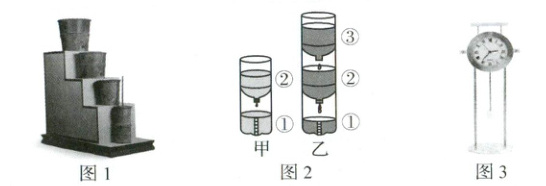 3. 参观完水钟后,你对水钟产生了极大的兴趣,自己动手用塑料瓶制作了一个能准确计时的水钟[如图 2(甲)所示],并在①号瓶上标出刻度。