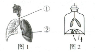 (1)图 1 是人体呼吸系统器官图,请写出这两个呼吸器官的名称:①