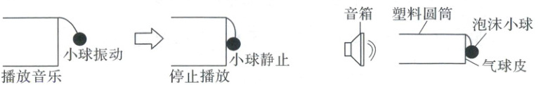 (2)播放音乐时,泡沫小球振动的主要原因是