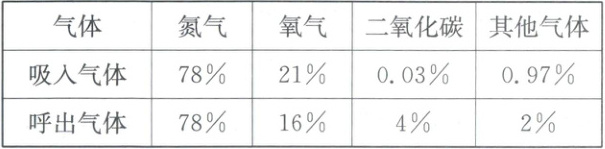 (1)呼出的气体和吸入的气体相比,氧气减少了,