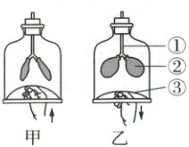 过程,乙瓶手向下拉开薄膜模拟的是吸气