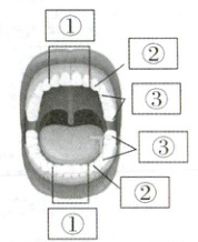 30. 如右图,口腔是人体的消化器官之一,能对食物进行初步消化。其中主要用来磨碎食物的牙齿是(