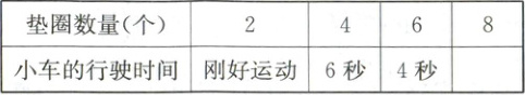 37. 小明改变悬挂的垫圈数量,测量并记录小车从桌面一端行驶到另一端所用的时间,记录的数据如下表所示。当悬挂 8 个垫圈时,小车的行驶时间最有可能是(