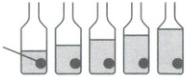 9. 如图,用盛水的玻璃瓶制作了一套简易乐器。从左到右用同样大小的力敲击瓶上的圆点位置,发出的声音会(