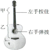 (3)学习了声音的秘密,小明又研究了尤克里里。演奏时左手按住琴弦,右手弹拨,主要是靠图中的(