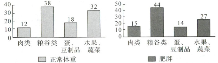 )的摄入量较正常体重的人偏多。A. 粮谷类和肉类