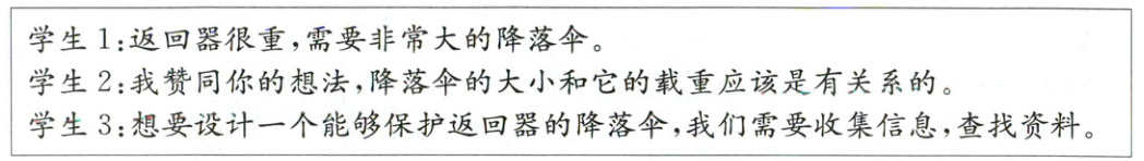 2. 观看了发射过程的同学们很激动,想设计一个能够“保护返回器”的降落伞,为此,他们展开了讨论: