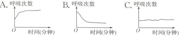 (5)小科在参加完长跑比赛后,马上开始测量自己的呼吸次数,以下是30分钟内呼吸次数的变化情况,其中较为合理的是(