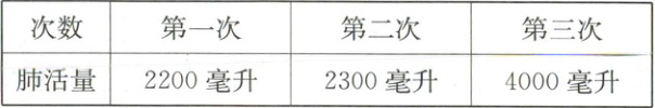 (6)在学习了呼吸的知识后,小科利用简易肺活量测量袋测了自己的肺活量,三次测量结果如下表所示。其中,第