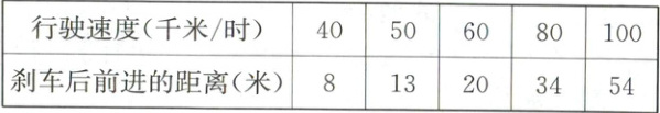 (2)分析表中的数据,可知汽车刹车后前进的距离与行驶速度的关系是