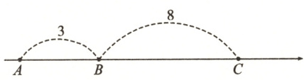 (1)$\because$点A到点B的距离为$3$,点B到点C的距离为$8$,B为原点,