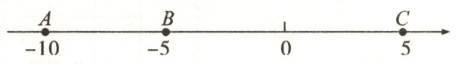 24. (12 分)如图,数轴上有 $ A,B,C $ 三个点,分别表示有理数 $ -10,-5,5 $,动点 $ P $ 从点 $ A $ 出发,以每秒 1 个单位的速度向终点 $ C $ 移动,移动时间为 $ t\ s $.