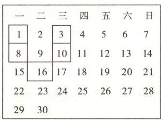 ”U 形框框住五个数,其中最小的数为 1,求 U 形框中的五个数字之和;