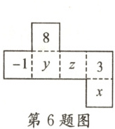 6. 如图是一个正方体的平面展开图,若将其按虚线折叠成正方体后,相对面上的两个数字之和均为 6,则 $ 2x - y + z $ 的值为 (