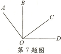7. 如图,已知 $ \angle AOC = \angle BOD = 90^{\circ} $,且 $ \angle AOD = 128^{\circ} $,则 $ \angle BOC $ 的度数为 (
