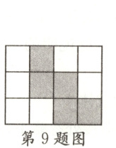 9. 如图是 $ 4 × 3 $ 的正方形网格,选择一空白小正方形,能与阴影部分组成正方体展开图的方法有 (