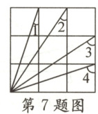 7. 如图,在$3×3$的正方形网格中,$∠1+∠2+∠3+∠4$的度数为(