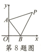 8. 如图,在平面直角坐标系中,以坐标原点$O(0,0),A(0,4),B(3,0)$为顶点的$Rt\triangle AOB$,其两个锐角对应的外角的平分线相交于点 P,则$S_{\triangle PAB}=$(