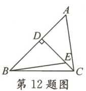 12. 如图,在$\triangle ABC$中,$CD⊥AB$于点 D,E 是 CD 上一点. 若$\triangle BDE\cong \triangle CDA,AB=14,AC=10$,则$\triangle BDE$的周长为